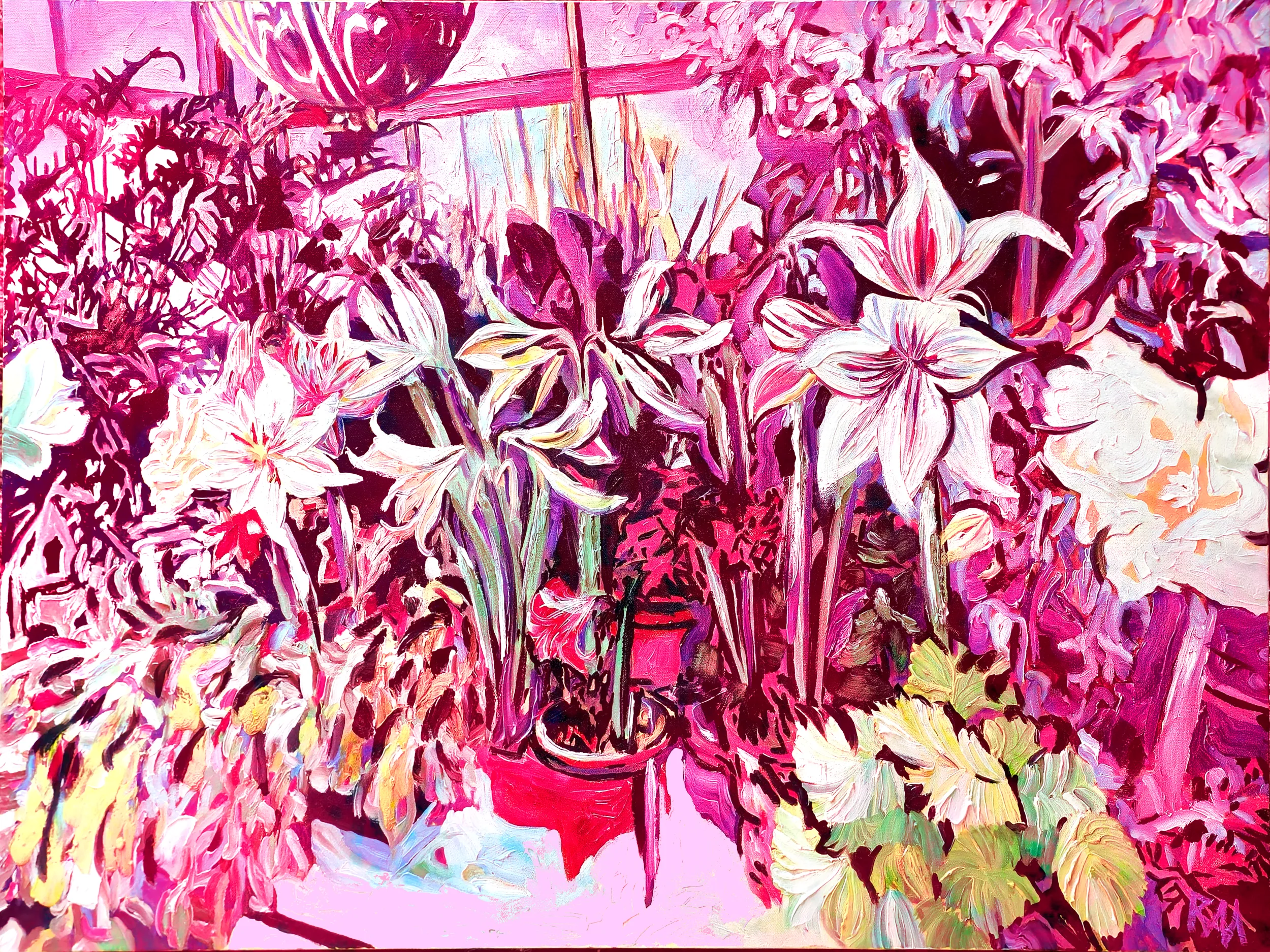 This is a Artwork in Pink of Robert Mihaly?s oil painting Conservatory at Biltmore, 2025