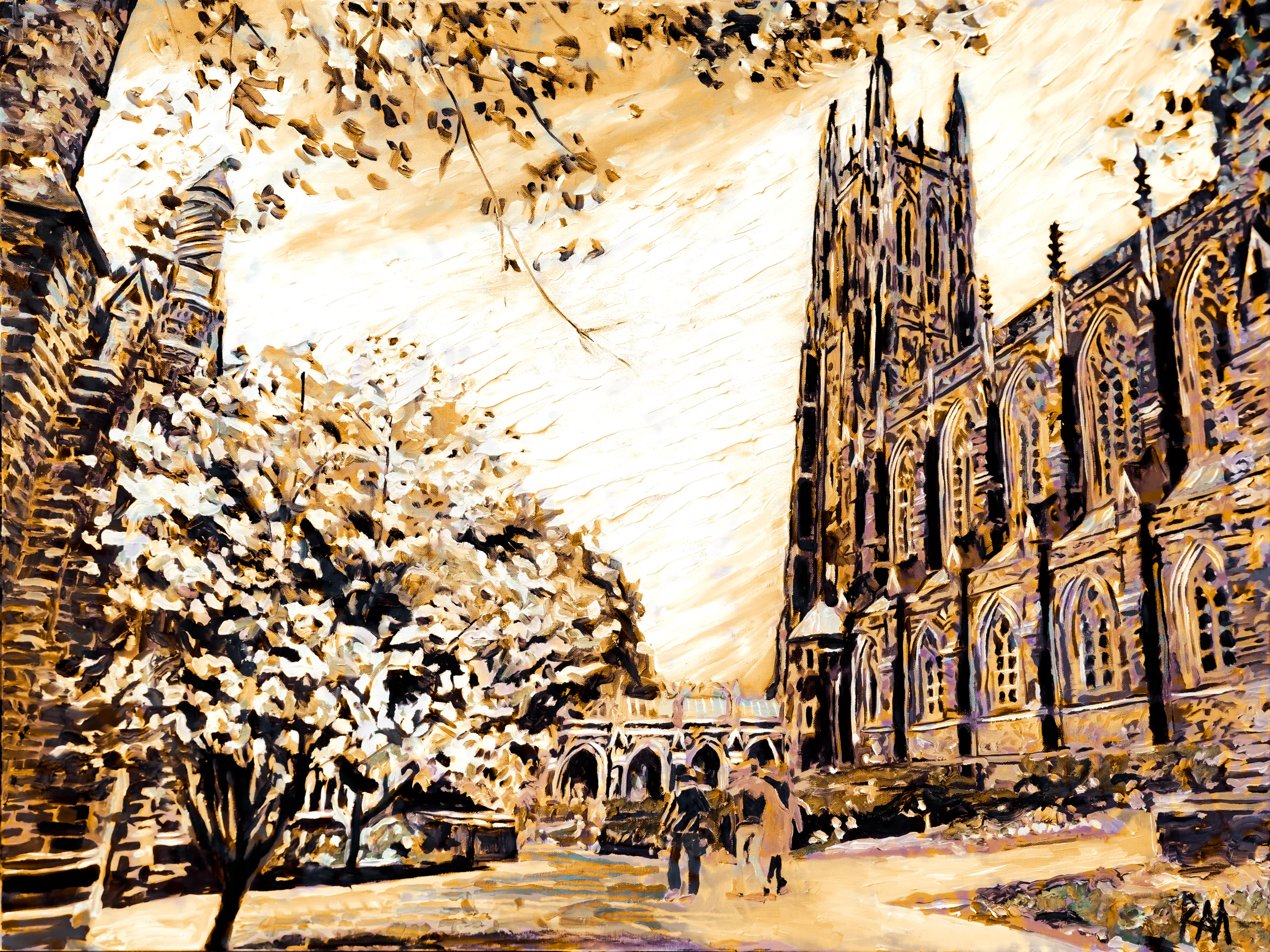 This is a Print Edition in Brown of Robert Mihaly?s original oil painting Duke Chapel, 2024; in the Brown Edition, Mihaly bathes the cathedral?s pinnacles, buttresses, and stained-glass windows in warm sienna, umber, and chocolate tones, creating a grounded, timeless vision. The result is a scene filled with historical presence, tactile beauty, and enduring majesty.