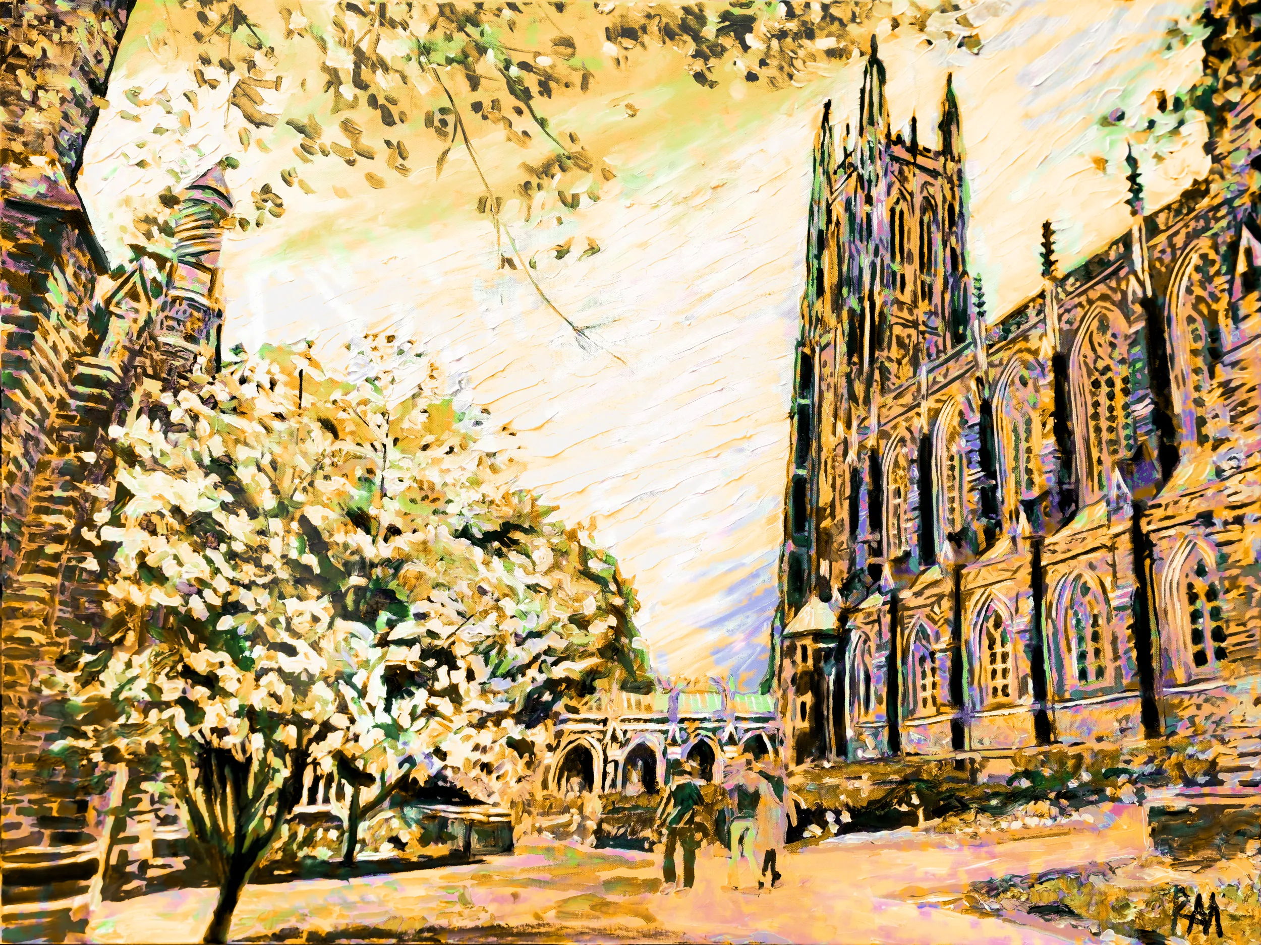 This is a Print Edition in Orange of Robert Mihaly?s original oil painting Duke Chapel, 2024; in the Orange Edition, Mihaly bathes the cathedral?s pinnacles, buttresses, and stained-glass windows in vibrant amber, copper, and tangerine tones, creating a radiant, warm vision. The result is a scene filled with energy, architectural majesty, and luminous intensity.