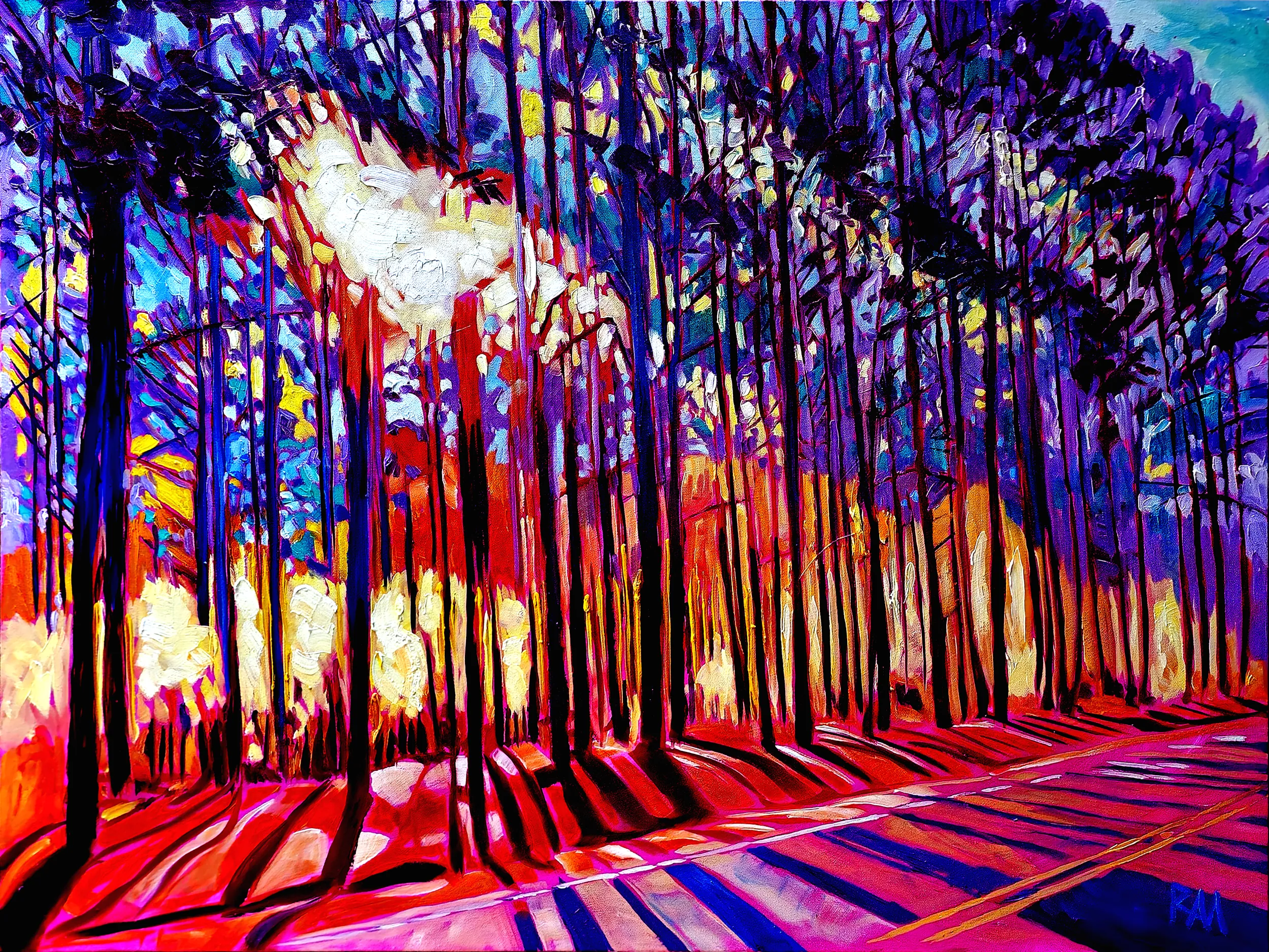 This is a Artwork in Dark & Moody of Robert Mihaly?s original oil painting Duke Forest, 2024