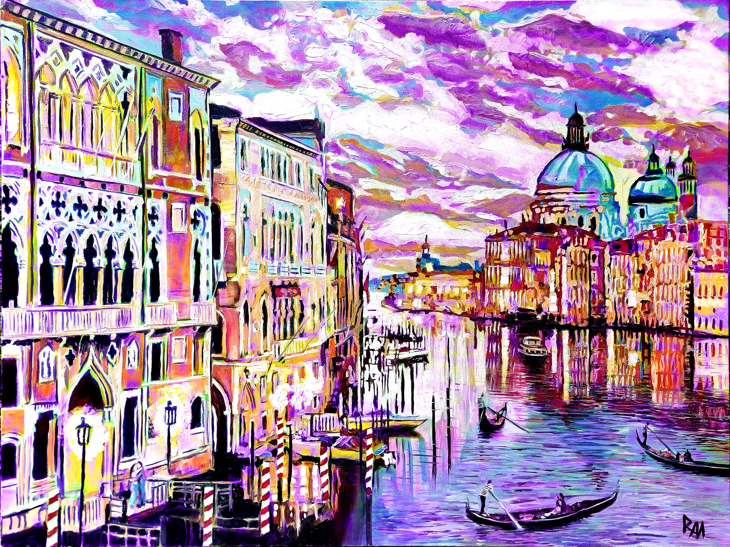 This is a Artwork in Purple of Robert Mihaly?s original oil painting Grand Canal, Venice, 2025