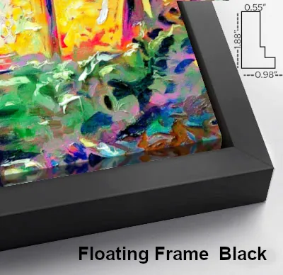 Minimal and architectural, the black floating frame provides crisp separation between artwork and wall. Its matte finish and shadow-gap design enhance contrast, making colors feel richer and compositions more focused.
