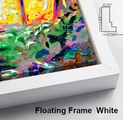 Clean, bright, and quietly modern, this white floating frame offers a gallery-style presentation that emphasizes light and space. The shadow gap adds depth while maintaining a fresh, minimalist aesthetic that works beautifully in contemporary interiors.