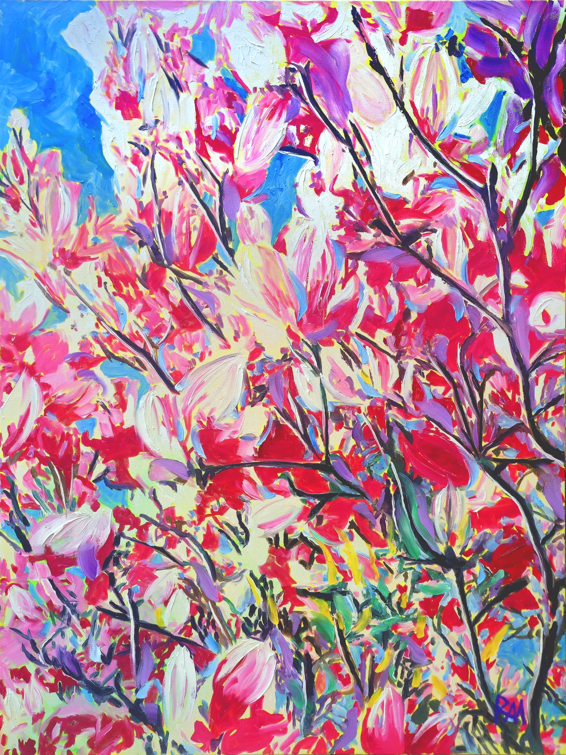 This is a Artwork in Original Painted Colors of Robert Mihaly?s oil painting Magnolia Blossoms, 2024