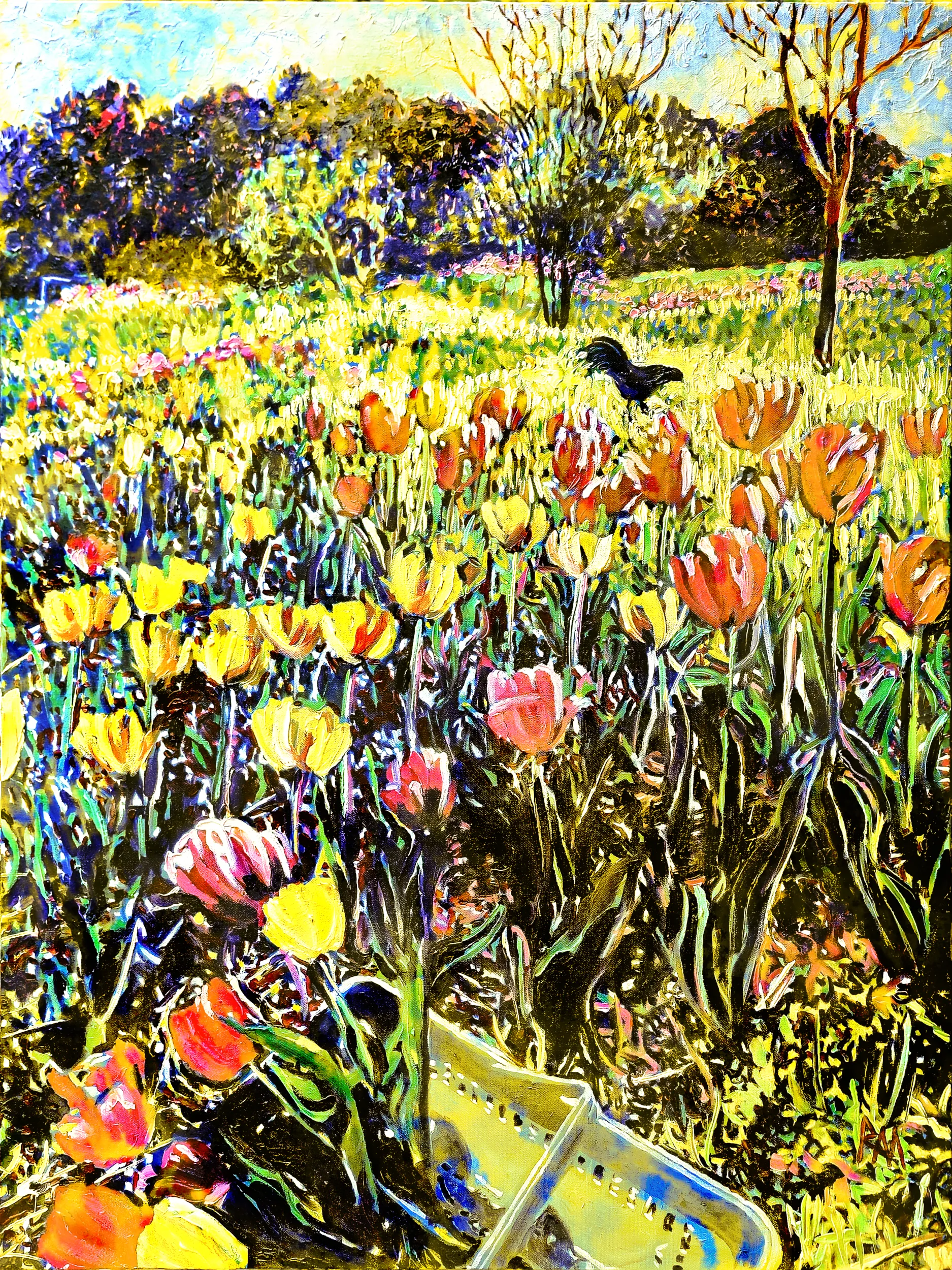 This is a Artwork in Yellow of Robert Mihaly?s original oil painting Tulips at Firefly Farm, 2025